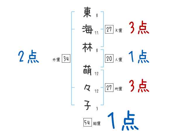天運![]() | 東海林萌々子さんの天運は27画の3つ星!頭脳明晰だが強情で摩擦が多い傾向。孤立に注意。 家系が持つ宿命的な運勢を表します。祖先から受け継いだ苗字ですので自分の力が及びません。家柄を象徴します。 |