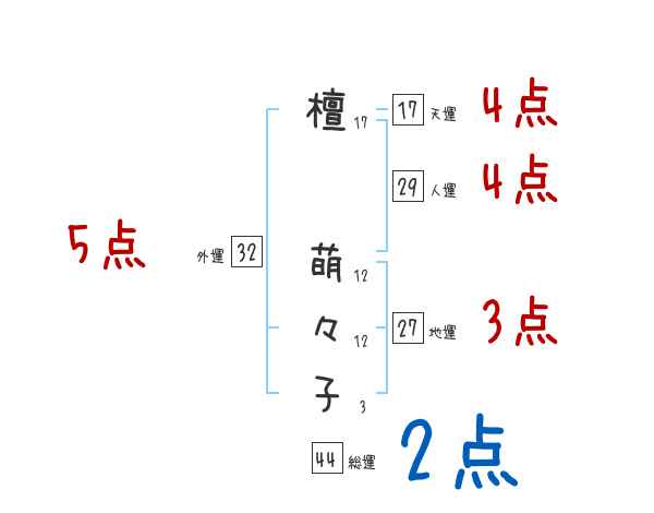 檀萌々子さんの画数の鑑定結果