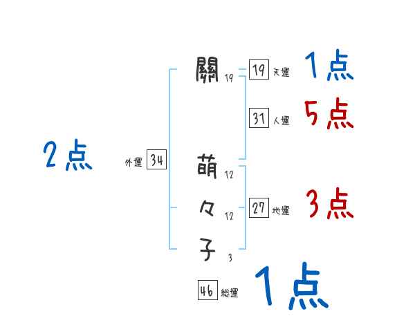 關萌々子さんの画数の鑑定結果