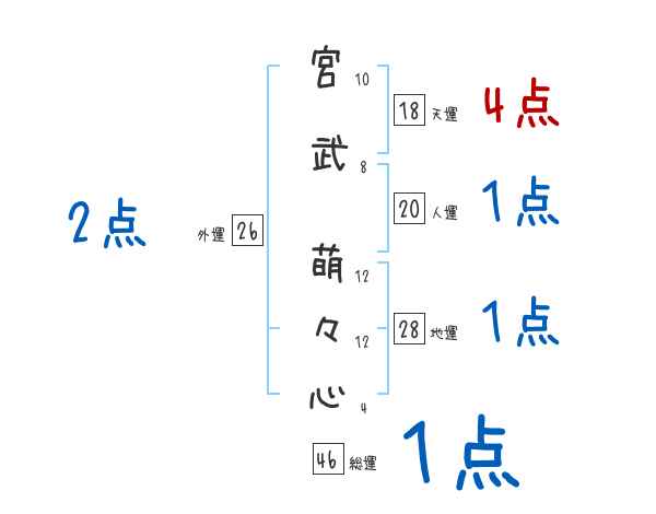 宮武萌々心さんの画数の鑑定結果