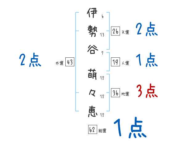 伊勢谷萌々恵さんの画数の鑑定結果
