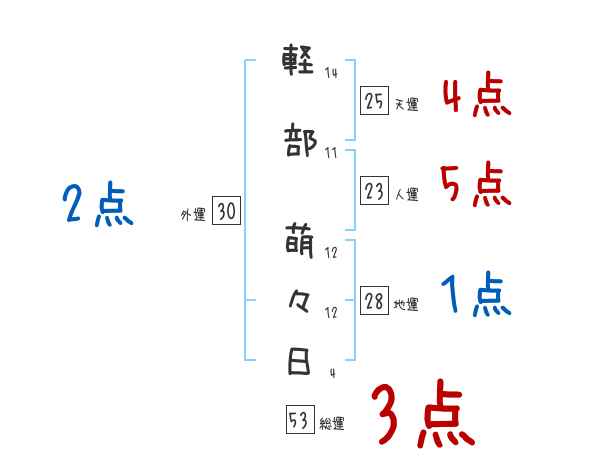軽部萌々日さんの画数の鑑定結果