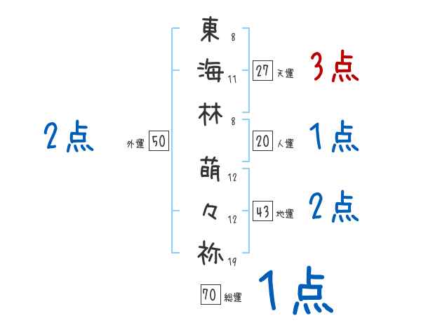 天運![]() | 東海林萌々祢さんの天運は27画の3つ星!頭脳明晰だが強情で摩擦が多い傾向。孤立に注意。 家系が持つ宿命的な運勢を表します。祖先から受け継いだ苗字ですので自分の力が及びません。家柄を象徴します。 |