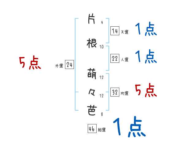 外運![]() | 片根萌々芭さんの外運は24画の5つ星!家庭運が良く順調な人生。金運にも恵まれる。 生活面を象徴する運勢です。外部から受ける影響力を表し、結婚運、家庭運や職場、環境への順応性を表します。 |