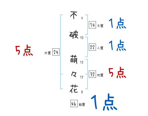 外運![]() | 不破萌々花さんの外運は24画の5つ星!家庭運が良く順調な人生。金運にも恵まれる。 生活面を象徴する運勢です。外部から受ける影響力を表し、結婚運、家庭運や職場、環境への順応性を表します。 |