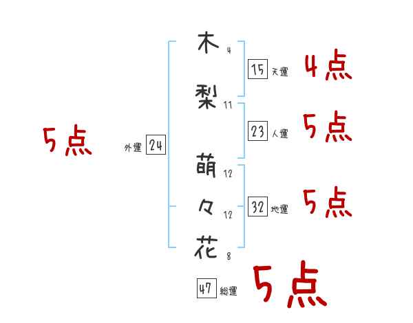 木梨萌々花さんの画数の鑑定結果