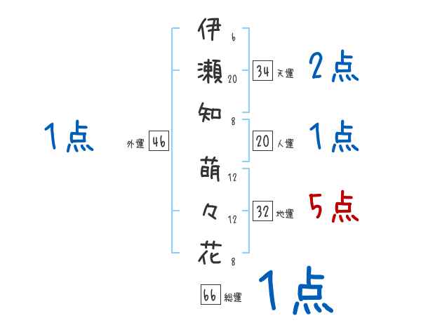 伊瀬知萌々花さんの画数の鑑定結果