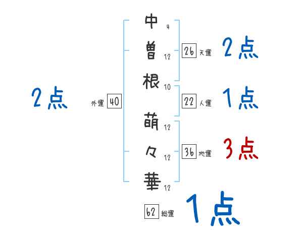 中曽根萌々華さんの画数の鑑定結果