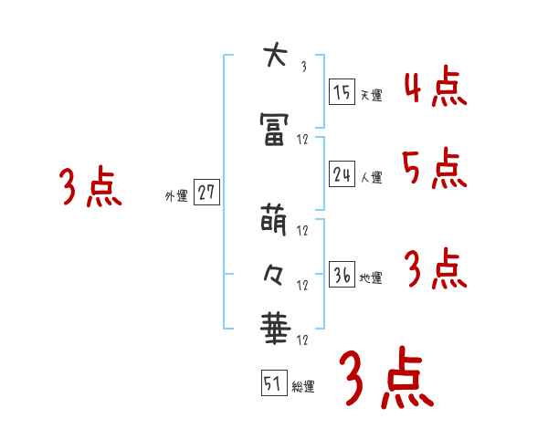 大冨萌々華さんの画数の鑑定結果