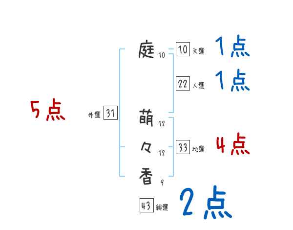 外運![]() | 庭萌々香さんの外運は31画の5つ星!社交性があり判断力に優れる。順風満帆な人生で円満な生活。 生活面を象徴する運勢です。外部から受ける影響力を表し、結婚運、家庭運や職場、環境への順応性を表します。 |