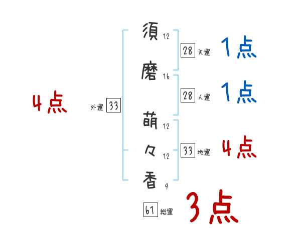須磨萌々香さんの画数の鑑定結果