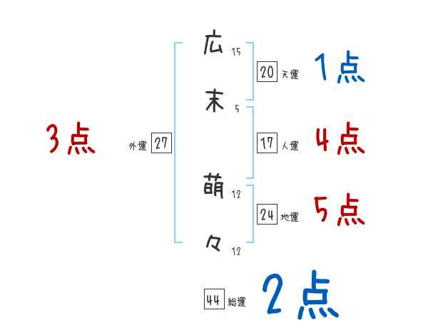 広末萌々さんの画数の鑑定結果