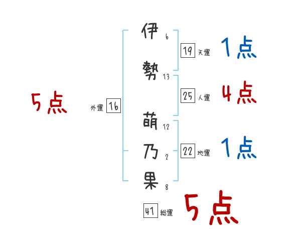 外運![]() | 伊勢萌乃果さんの外運は16画の5つ星!人望が厚く大きく発展する。逆転成功が見える。 生活面を象徴する運勢です。外部から受ける影響力を表し、結婚運、家庭運や職場、環境への順応性を表します。 |