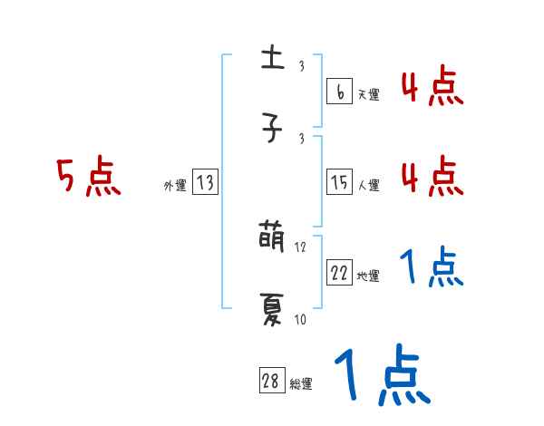 土子萌夏さんの画数の鑑定結果
