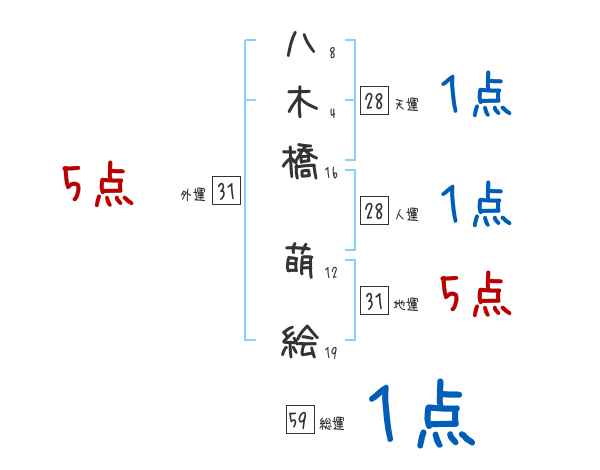 八木橋萌絵さんの画数の鑑定結果
