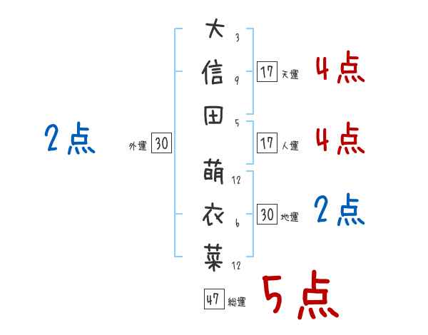 大信田萌衣菜さんの画数の鑑定結果