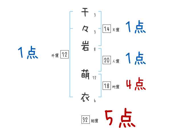 総運![]() | 千々岩萌衣さんの総運は32画の5つ星!柔軟性があり成功する。チャンスが多く金運が良い。 あなたの人生を表す1番重要な運勢です。生涯を通じて影響する総合運となり、主に50歳以降の晩年期に影響を及ぼします。 |