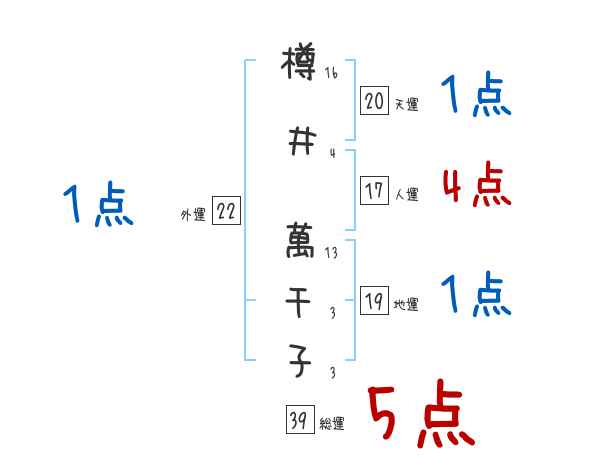 総運![]() | 樽井萬千子さんの総運は39画の5つ星!社交性に優れ人望が厚い。人の上に立ち成功する。 あなたの人生を表す1番重要な運勢です。生涯を通じて影響する総合運となり、主に50歳以降の晩年期に影響を及ぼします。 |