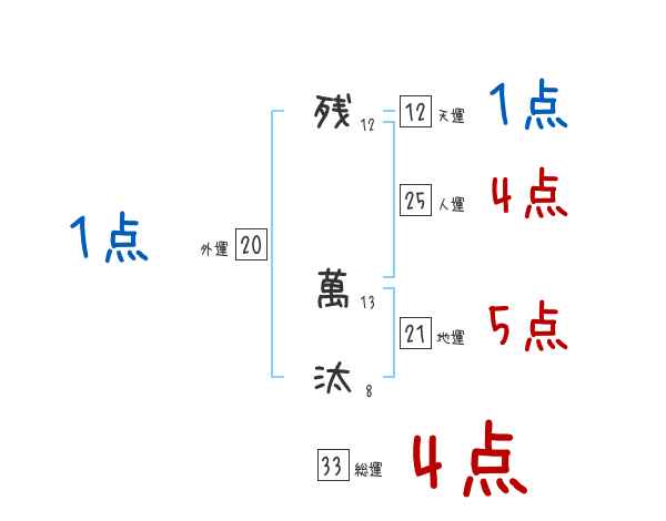 残萬汰さんの画数の鑑定結果