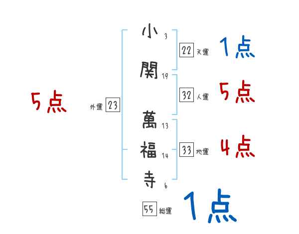 小関萬福寺さんの画数の鑑定結果