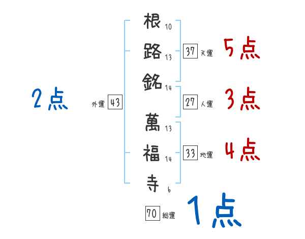 根路銘萬福寺さんの画数の鑑定結果