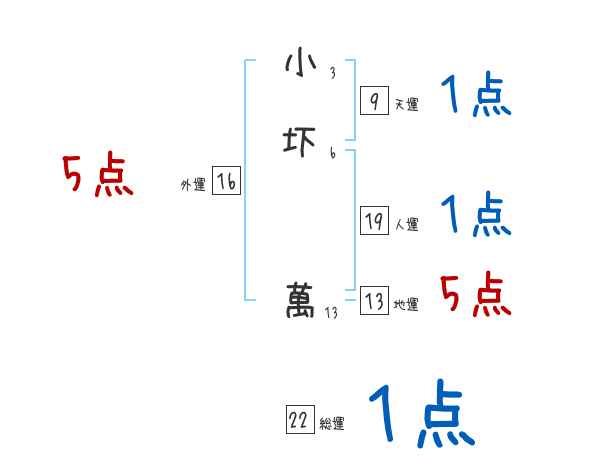 外運![]() | 小圷萬さんの外運は16画の5つ星!人望が厚く大きく発展する。逆転成功が見える。 生活面を象徴する運勢です。外部から受ける影響力を表し、結婚運、家庭運や職場、環境への順応性を表します。 |