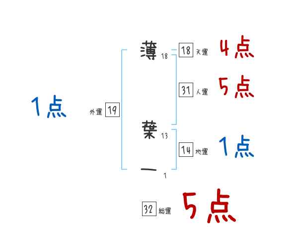 薄葉一さんの画数の鑑定結果