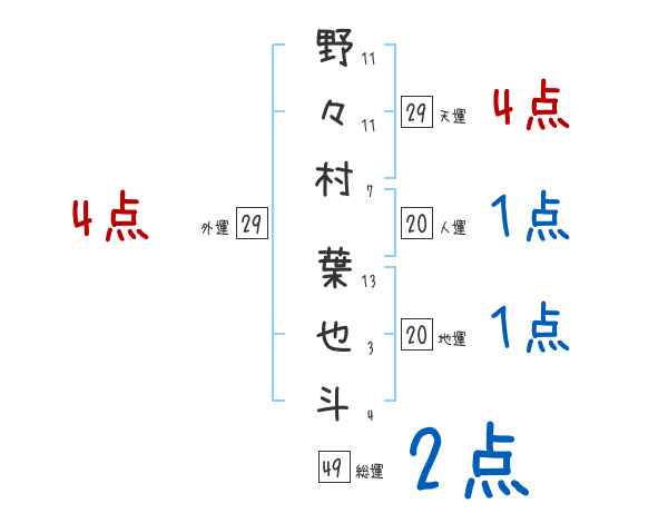 野々村葉也斗さんの画数の鑑定結果