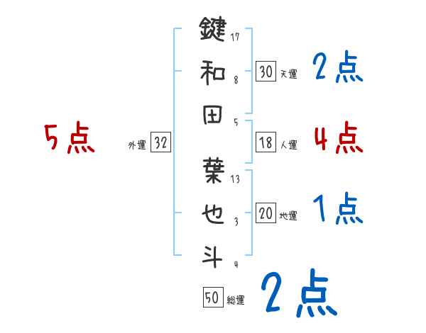 鍵和田葉也斗さんの画数の鑑定結果