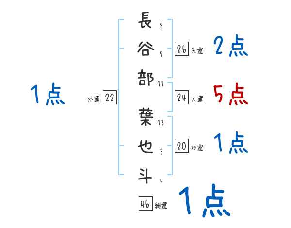長谷部葉也斗さんの画数の鑑定結果