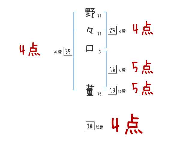 野々口董さんの画数の鑑定結果