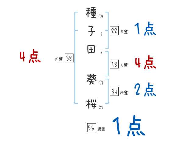 種子田葵桜さんの画数の鑑定結果