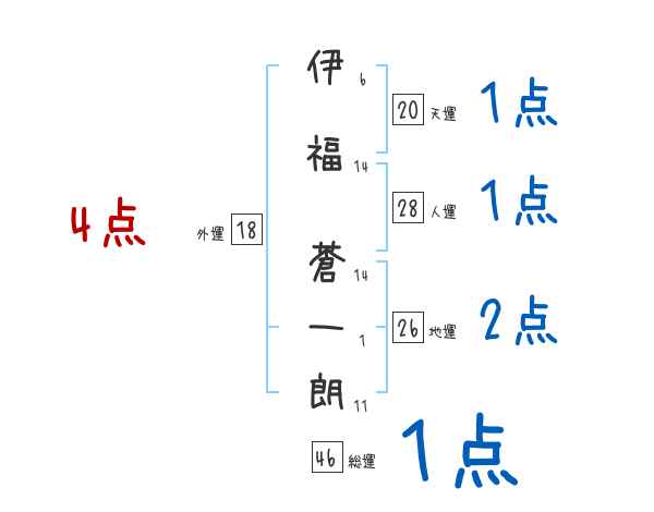 総運![]() | 伊福蒼一朗さんの総運は46画の1つ星!迷走することが多く苦労するかも。目先のことにとらわれないように。 あなたの人生を表す1番重要な運勢です。生涯を通じて影響する総合運となり、主に50歳以降の晩年期に影響を及ぼします。 |