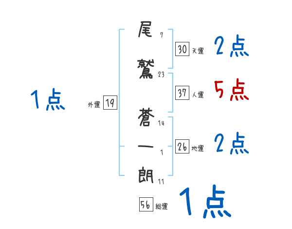 尾鷲蒼一朗さんの画数の鑑定結果
