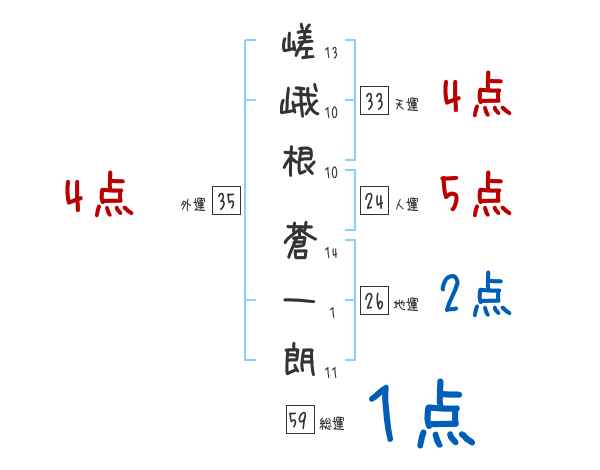 嵯峨根蒼一朗さんの画数の鑑定結果