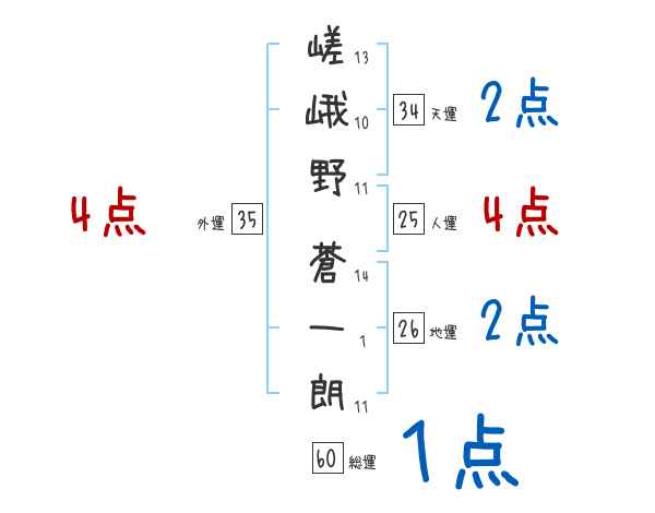 嵯峨野蒼一朗さんの画数の鑑定結果