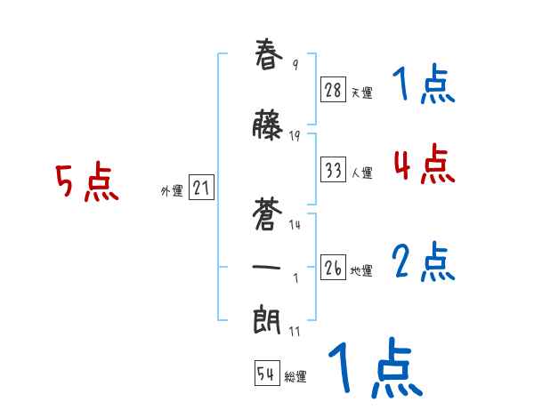 外運![]() | 春藤蒼一朗さんの外運は21画の5つ星!統率力がある。独立し成功する。名誉を手に入れる。 生活面を象徴する運勢です。外部から受ける影響力を表し、結婚運、家庭運や職場、環境への順応性を表します。 |