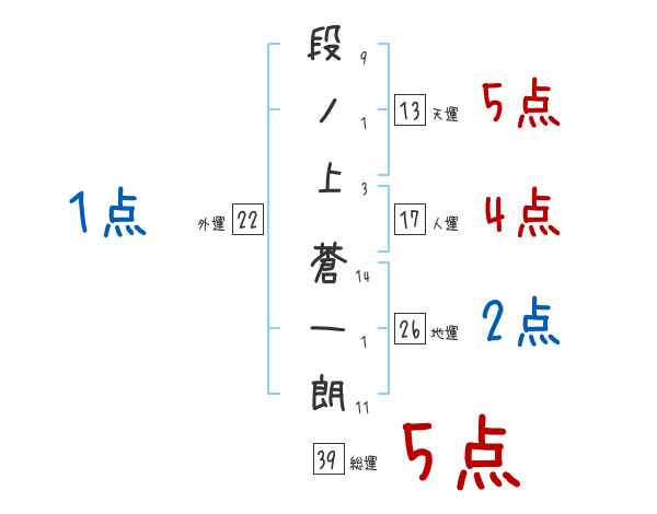 段ノ上蒼一朗さんの画数の鑑定結果