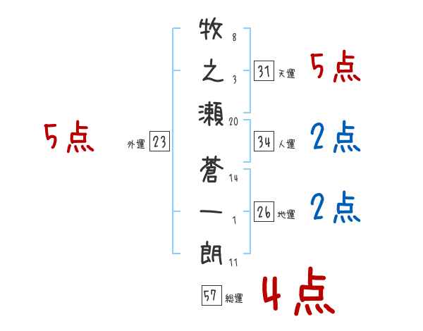 牧之瀬蒼一朗さんの画数の鑑定結果