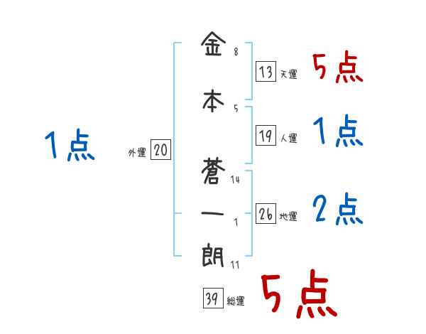 金本蒼一朗さんの画数の鑑定結果