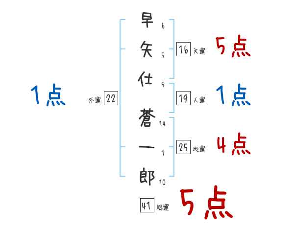天運![]() | 早矢仕蒼一郎さんの天運は16画の5つ星!人望が厚く大きく発展する。逆転成功が見える。 家系が持つ宿命的な運勢を表します。祖先から受け継いだ苗字ですので自分の力が及びません。家柄を象徴します。 |
