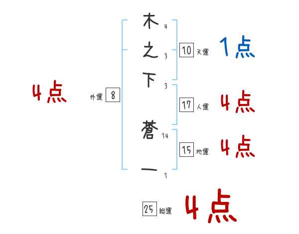 天運![]() | 木之下蒼一さんの天運は10画の1つ星!不安を感じやすい傾向。ストレスを抱えないように注意しましょう。 家系が持つ宿命的な運勢を表します。祖先から受け継いだ苗字ですので自分の力が及びません。家柄を象徴します。 |
