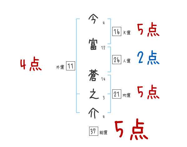 今富蒼之介さんの画数の鑑定結果