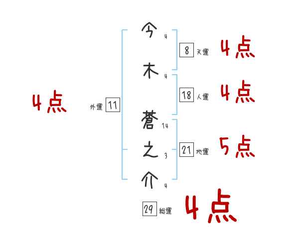 総運![]() | 今木蒼之介さんの総運は29画の4つ星!完全主義で才能がある。厳格な心の持ち主。 あなたの人生を表す1番重要な運勢です。生涯を通じて影響する総合運となり、主に50歳以降の晩年期に影響を及ぼします。 |