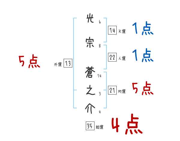 光宗蒼之介さんの画数の鑑定結果