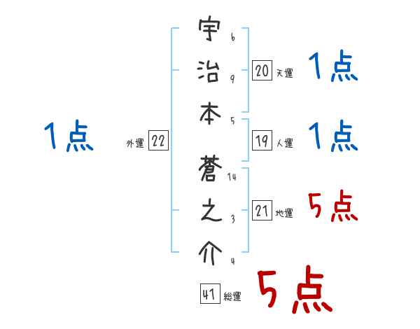 宇治本蒼之介さんの画数の鑑定結果