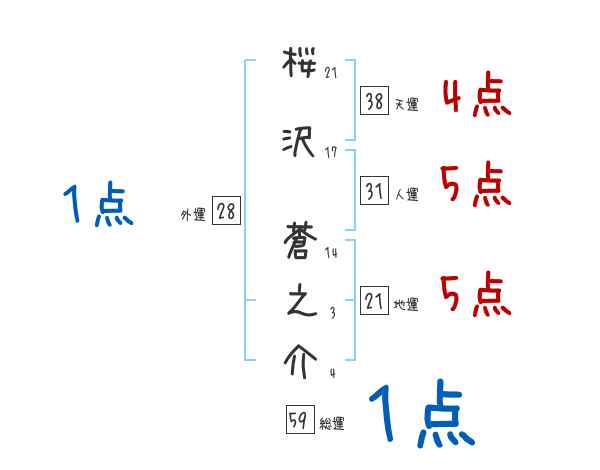 桜沢蒼之介さんの画数の鑑定結果