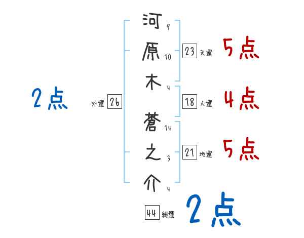 河原木蒼之介さんの画数の鑑定結果