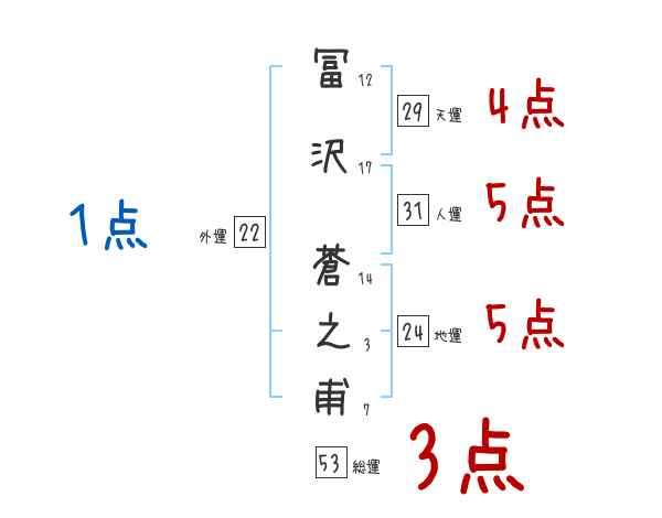 冨沢蒼之甫さんの画数の鑑定結果