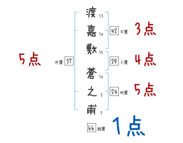 渡嘉敷蒼之甫さんの画数の鑑定結果